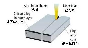 無填絲遠(yuǎn)程焊接:由兩種合金板軋制而成的復(fù)合鋁板。